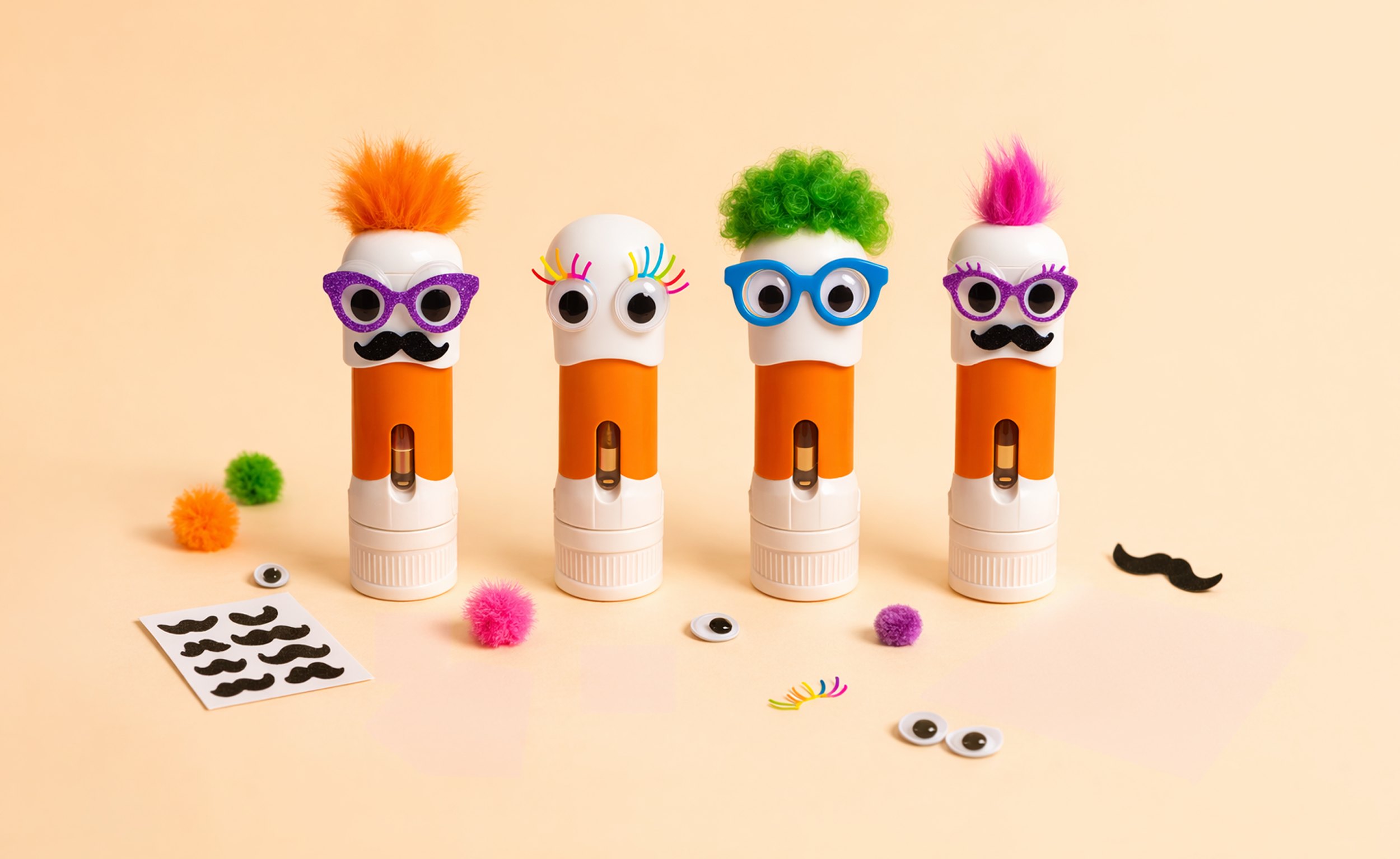 To bring the fun into the real world, kids are also given a sheet of 3D fuzzy stickers so they can decorate their Methofill device and make it feel a little more their own.