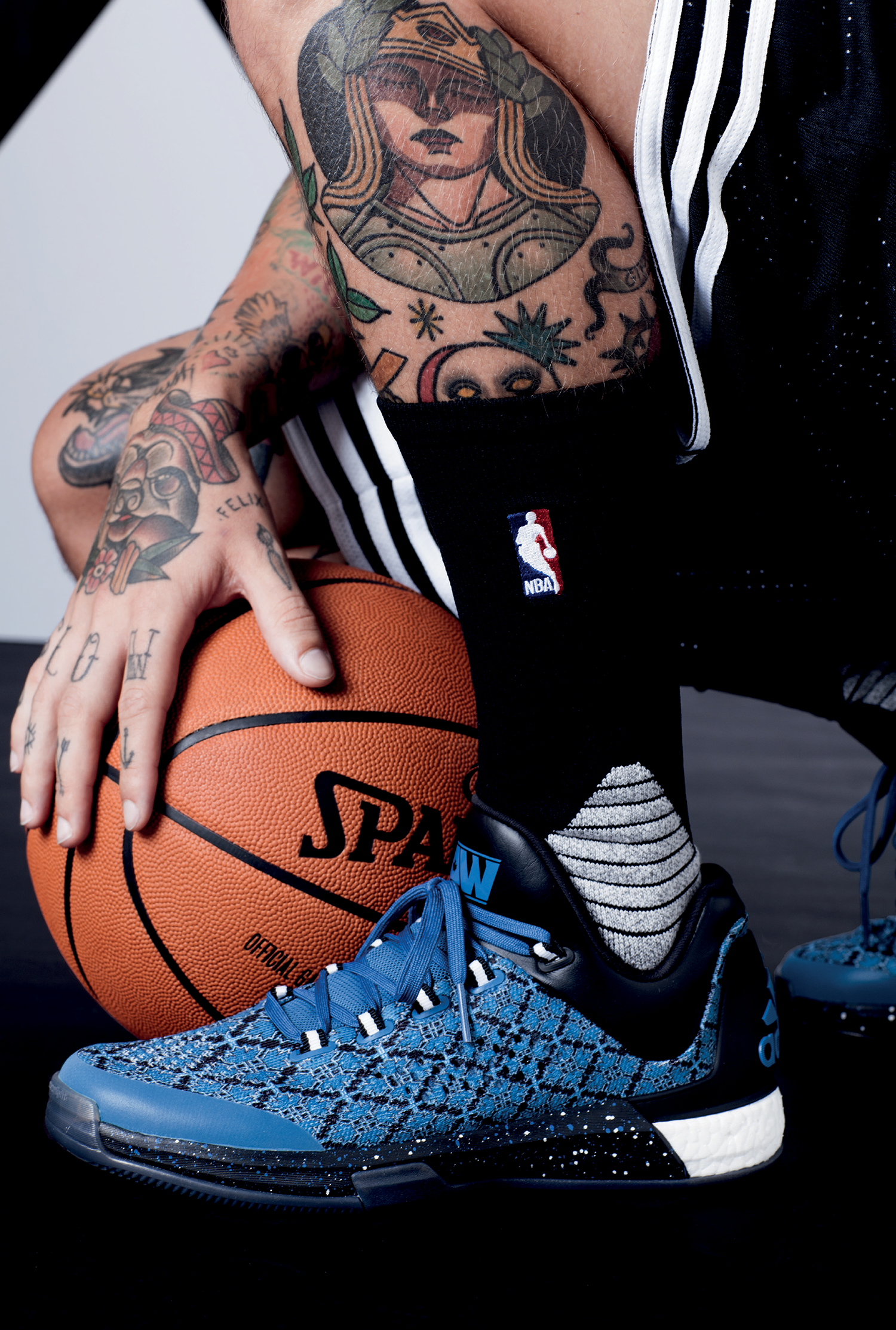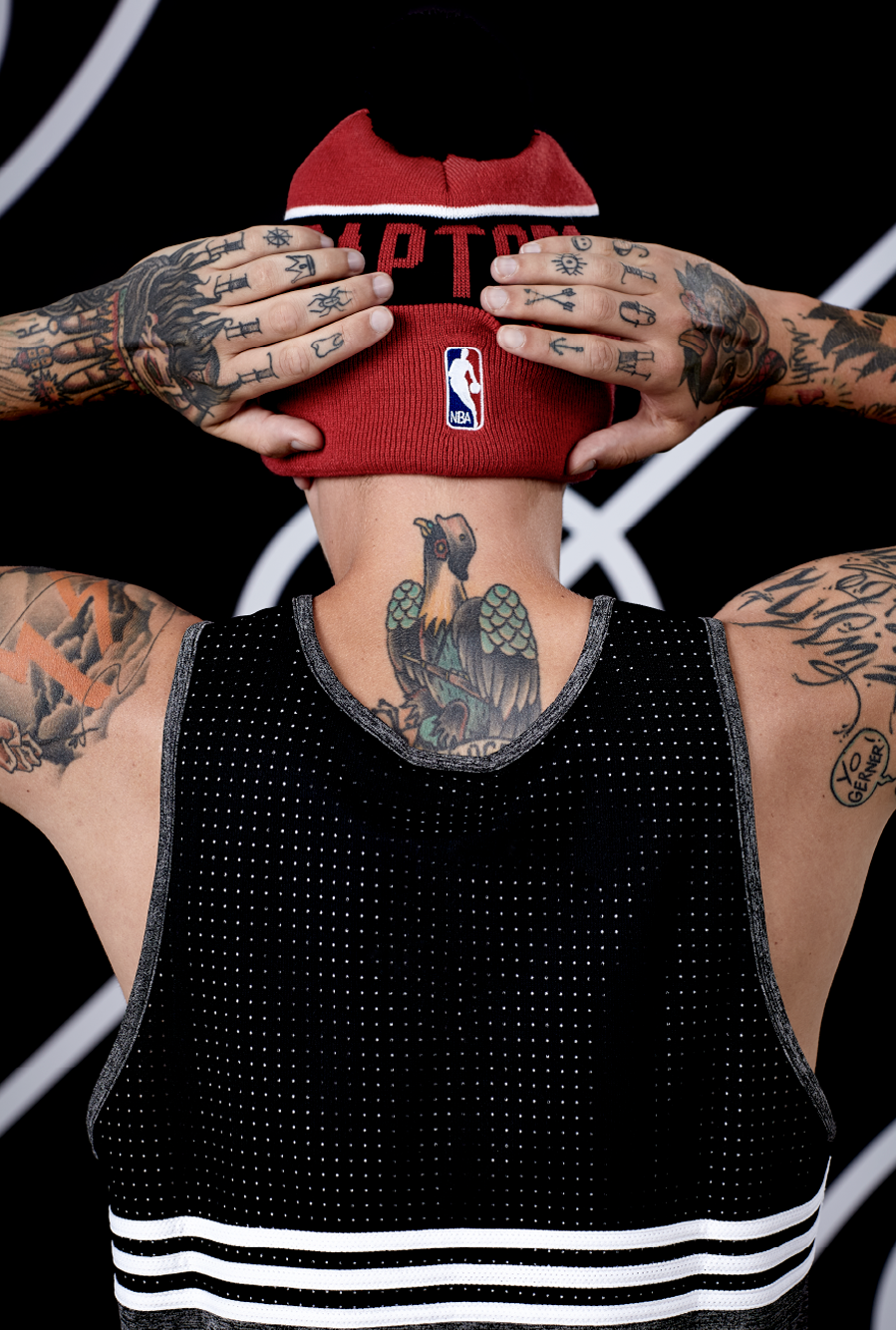 The NBA range was all about the details, so the shoot was too. Bold black and white patterns distilled the game down to its essence, drawing from the net, ball, court and hardwood.