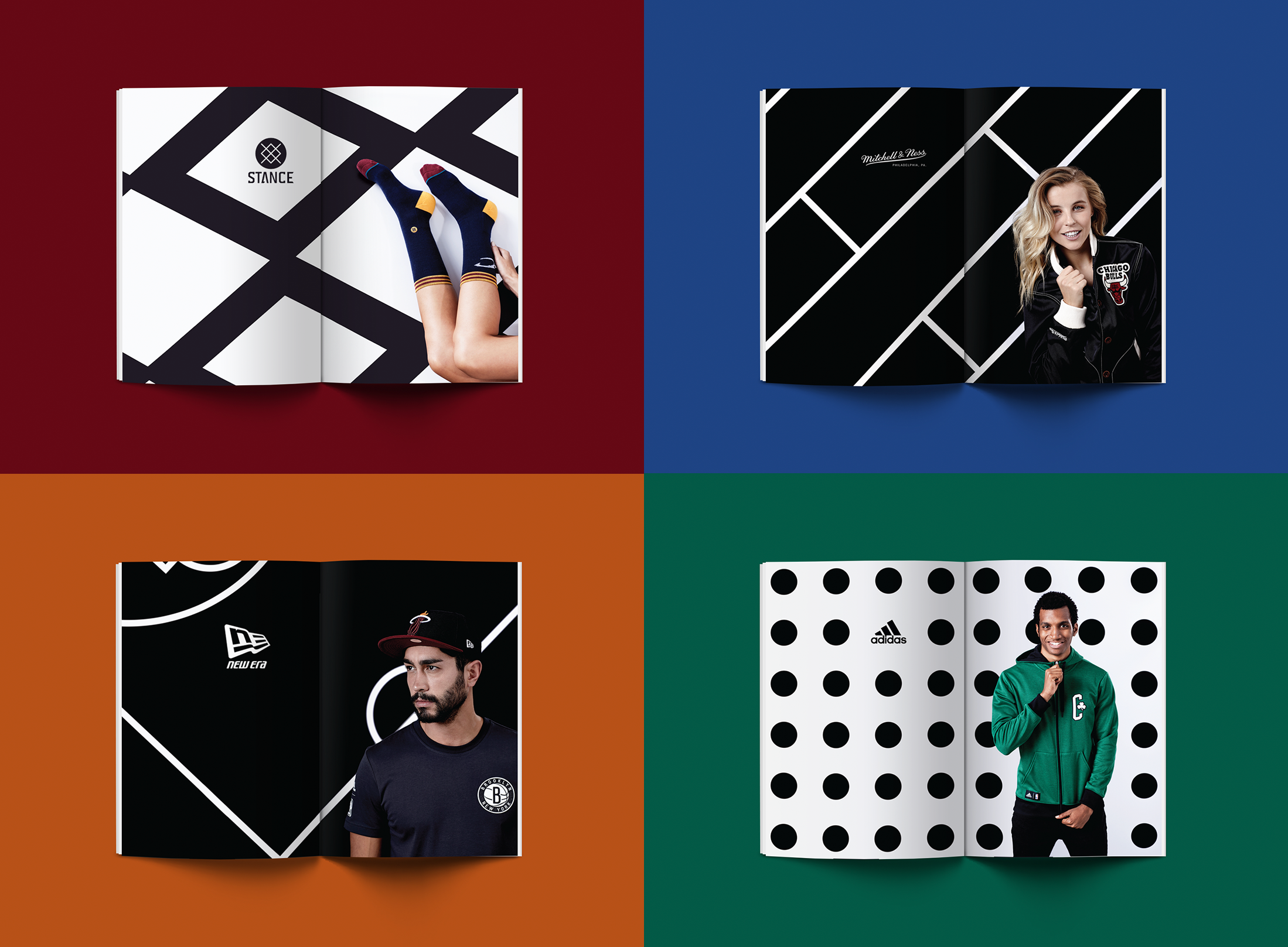 Distinct backdrops gave Stance, Mitchell and Ness, Adidas and New Era their own moment, setting each apart while keeping the visual story cohesive.